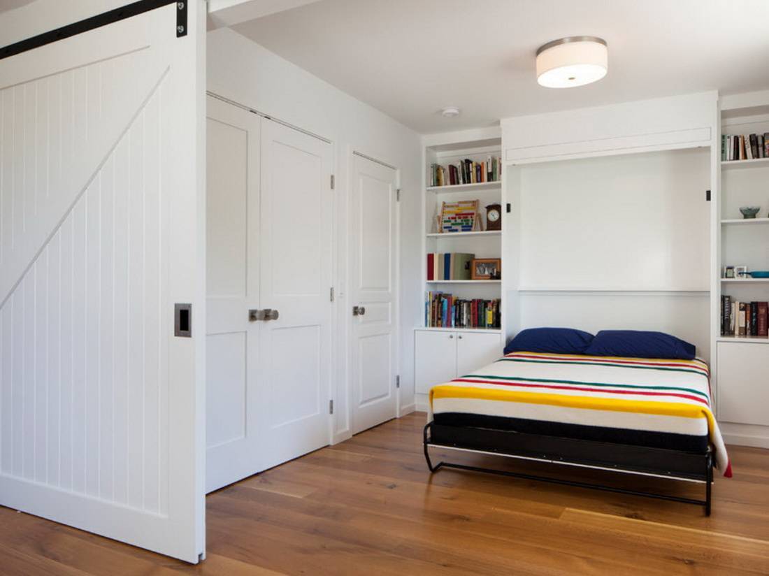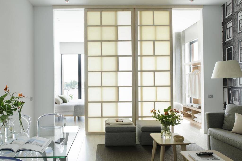 Очень подходящий для квартир в современных кондоминиумах стиль контемпорари и белый цвет раздвижных дверей