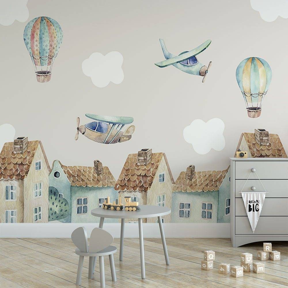 Городские пейзажи с преобладанием пышной зелени гармонируют с белыми, коричневыми, синими стенами. Доминирование на обоях глубокого синего — повод подобрать для отделки остальной части комнаты серый, белый, молочный оттенки. Так у вас получится создать спокойный дизайн. Фиолетовые и сиреневые рисунки требуют дополнения в виде розового, лилового, бежевого.