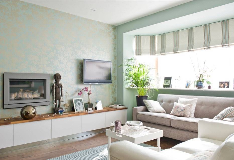 Подходят для интерьера спальни, гостиной, прихожей. Это могут быть серые узоры на зеленом фоне, рисунок или полосы.