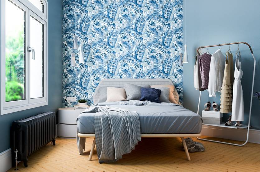 Остановившись на такой комбинации помните: крупные принты визуально уменьшают поверхности, мелкие наоборот, делают немного больше. Поэтому для акцентов выбирайте обои в крупный рисунок или геометрию, а мелкий пусть выступает фоном.