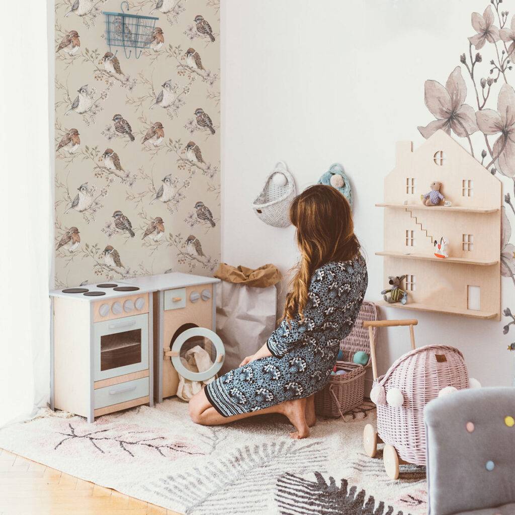 Обои для комнаты девочки должны быть нейтральными по цветовой гамме, подходящей к вышеперечисленным элементам. Они могут быть пастельных тонов, но в комнате должны быть нежными, ненавязчивыми. Если вы решаетесь на более выразительный узор, пусть он будет виден только на одной стене. Таким образом, вы избежите впечатления беспорядка и подавляющего эффекта.