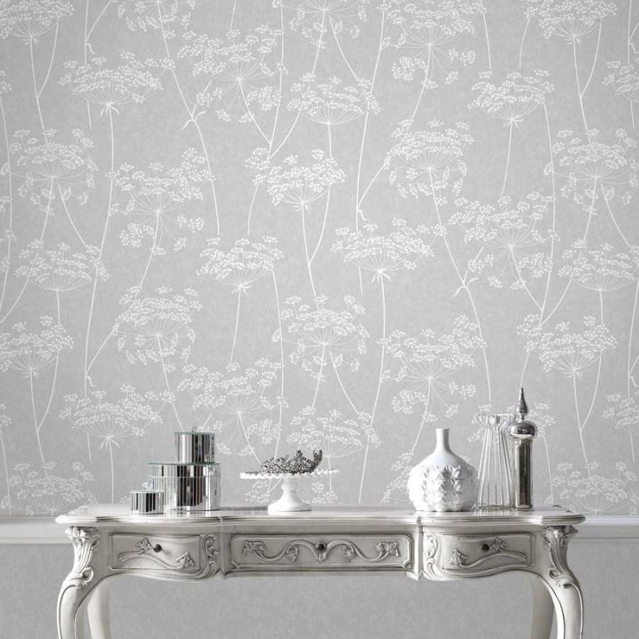 Если же больше нравится оригинальный подход, стоит обратить внимание на бело-серебристые обои. Можно взять белоснежные отделочные материалы с большим рисунком и серебристого цвета