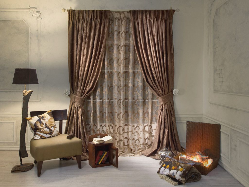 Гостиная. В просторной комнате хорошо смотрятся портьеры любого коричневого тона; их выбирают в тон или в контраст остальной отделке. Если гостиная небольшая, выбирают светло-коричневый или бежевый, с коричневым рисунком, вариант. При выборе обязательно учитывают общее интерьерное оформление.