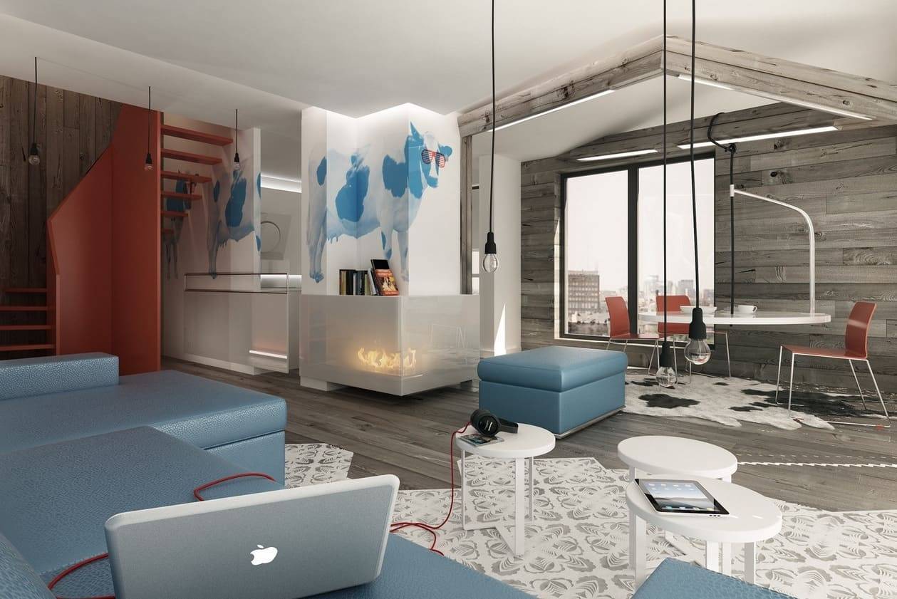 При авангардном решении интерьера можно использовать сочные оттенки в отделке стен