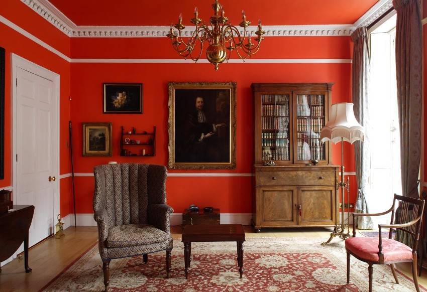 Вернее, не обычная, а покрашенная, например, в рыжий, зеленый или даже красный цвет. Но если подобное решение принимается за основу, следует помнить, что тон двери все равно должен «перекликаться» с еще какими-то элементами интерьера: что-то из мебели, либо портьеры, аксессуары на стенах. Кстати, именно плинтус, окрашенный в тот же цвет, что и дверь, может стать логическим завершением всей композиции, как бы обрамляя собой весь интерьер.