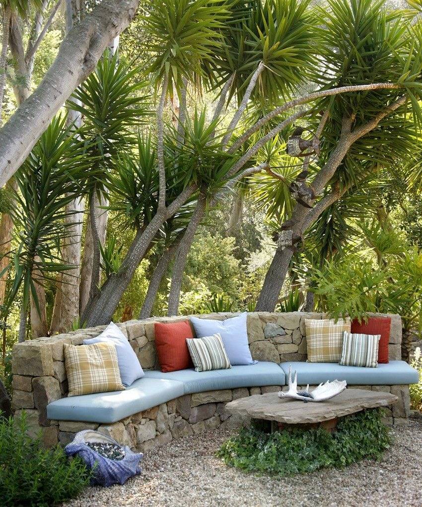 Каменная скамья в зоне отдыхаИсточник divo-dacha.ru