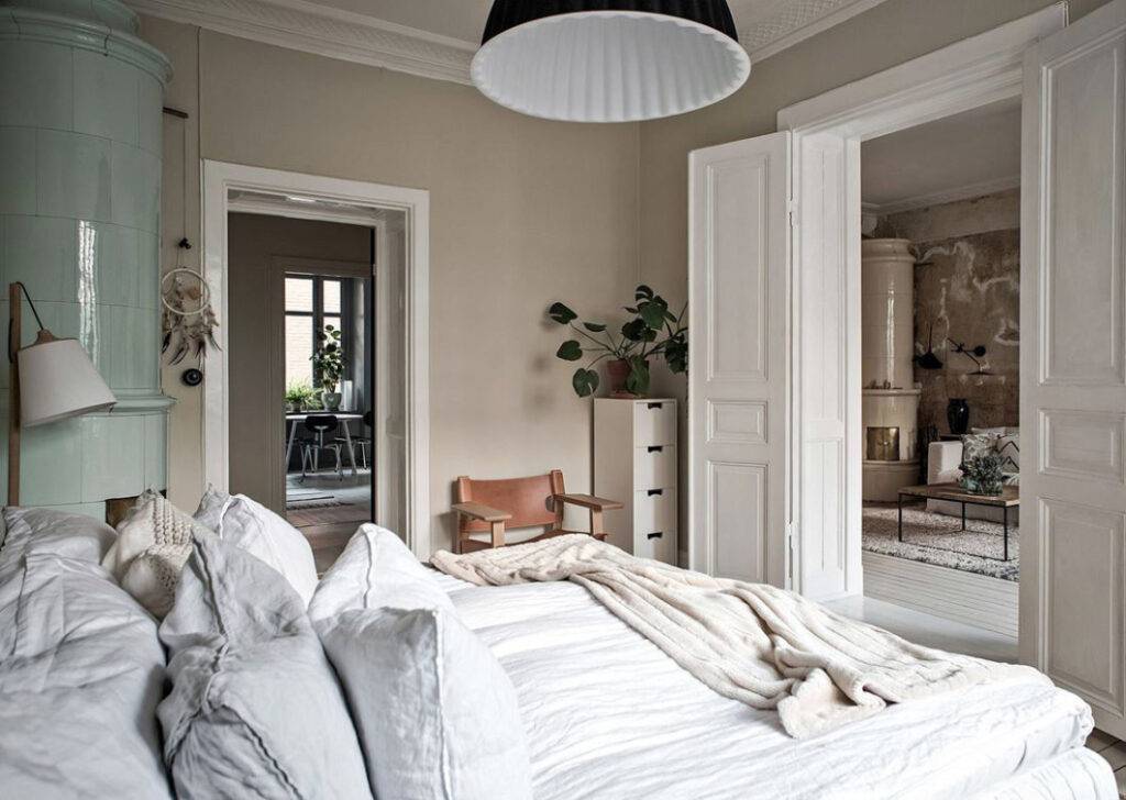Бежевые стены, когда на них падает много теней, могут приобретать грязный, подавляющий цвет, поэтому убедитесь, что интерьер хорошо освещен как естественным, так и искусственным светом. Хороший способ — это, например, уже упомянутое висящее зеркало на стене напротив окна.