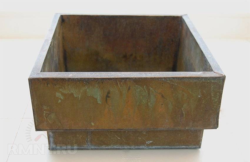 Основание настольной декоративной горелки должно представлять собой устойчивую коробку или ёмкость, в которую целиком войдёт топливный бак. Её можно сделать из дерева, металла, камня или подобрать из имеющихся деталей. Она может быть любой геометрической формы, но обязательно должна иметь дно. На внутренней стороне бортов необходимо нашить планку 20 мм шириной для последующей установки сетки и колбы.