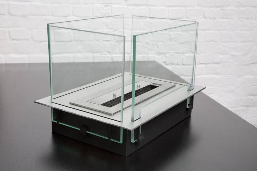 В корпус биокамина встроено его «сердце» — горелка или топливный блок, заполняемый биоэтанолом. В недорогих моделях устанавливают горелку-стакан – емкость из нержавеющей (толщина – 2 мм) стали.
