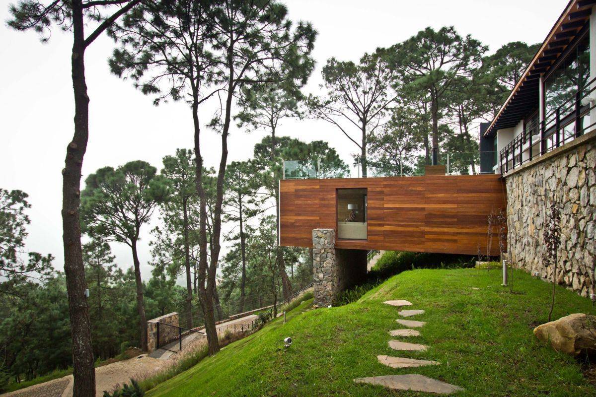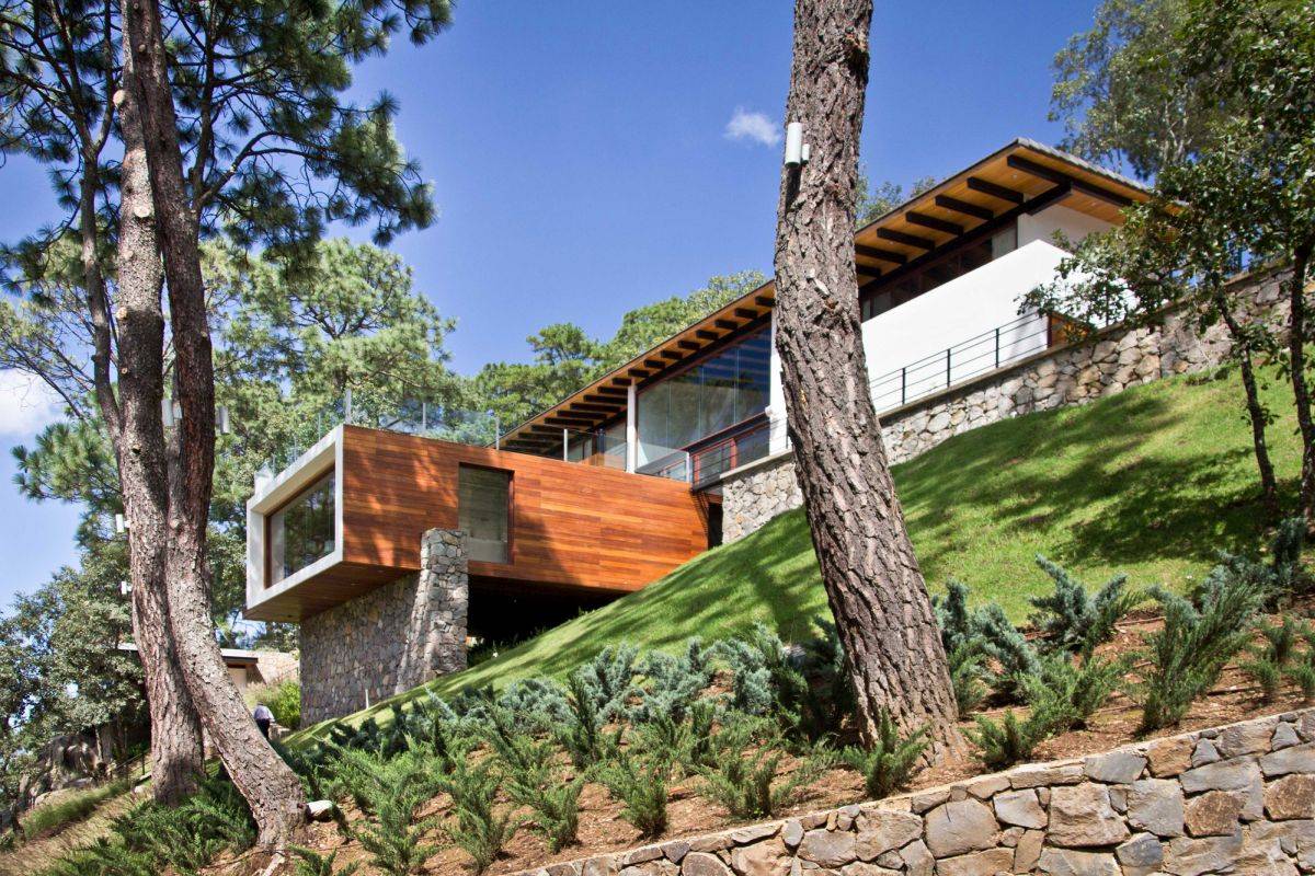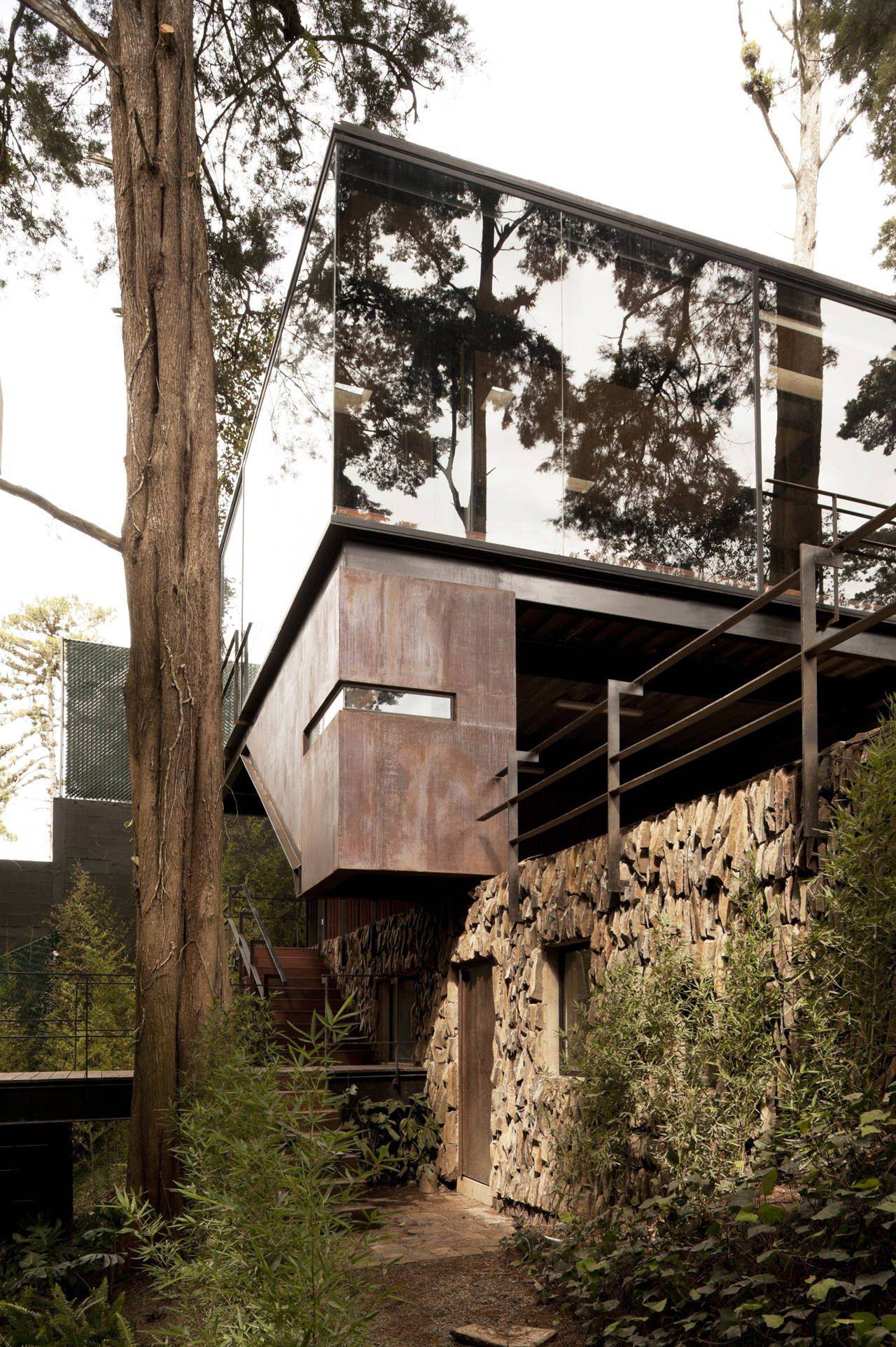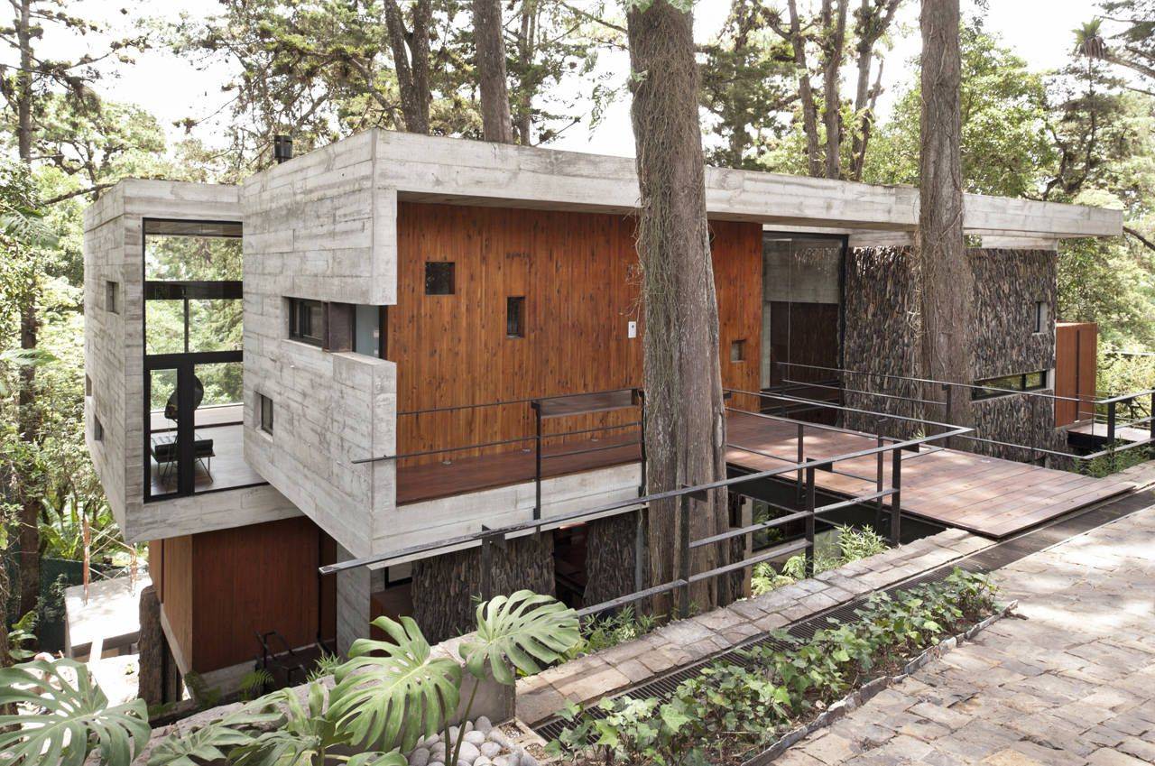 Внутренние жилые помещения обеспечивают прямой выход на улицу с плавным и плавным переходом. Дом состоит из двух больших объемов, которые образуют L-образную форму, построенную вокруг деревьев и каменных стен. Общий дизайн устойчив, верхний уровень использует стратегии пассивного нагрева и охлаждения.