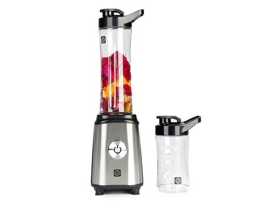 Стационарная модель. В комплекте есть нож для колки льда и бутылка для смузи объёмом 450 мл. Подходит также для изготовления пюре, жидкого теста и коктейлей. Мотор — 250 Вт, корпус сделан из пластика.