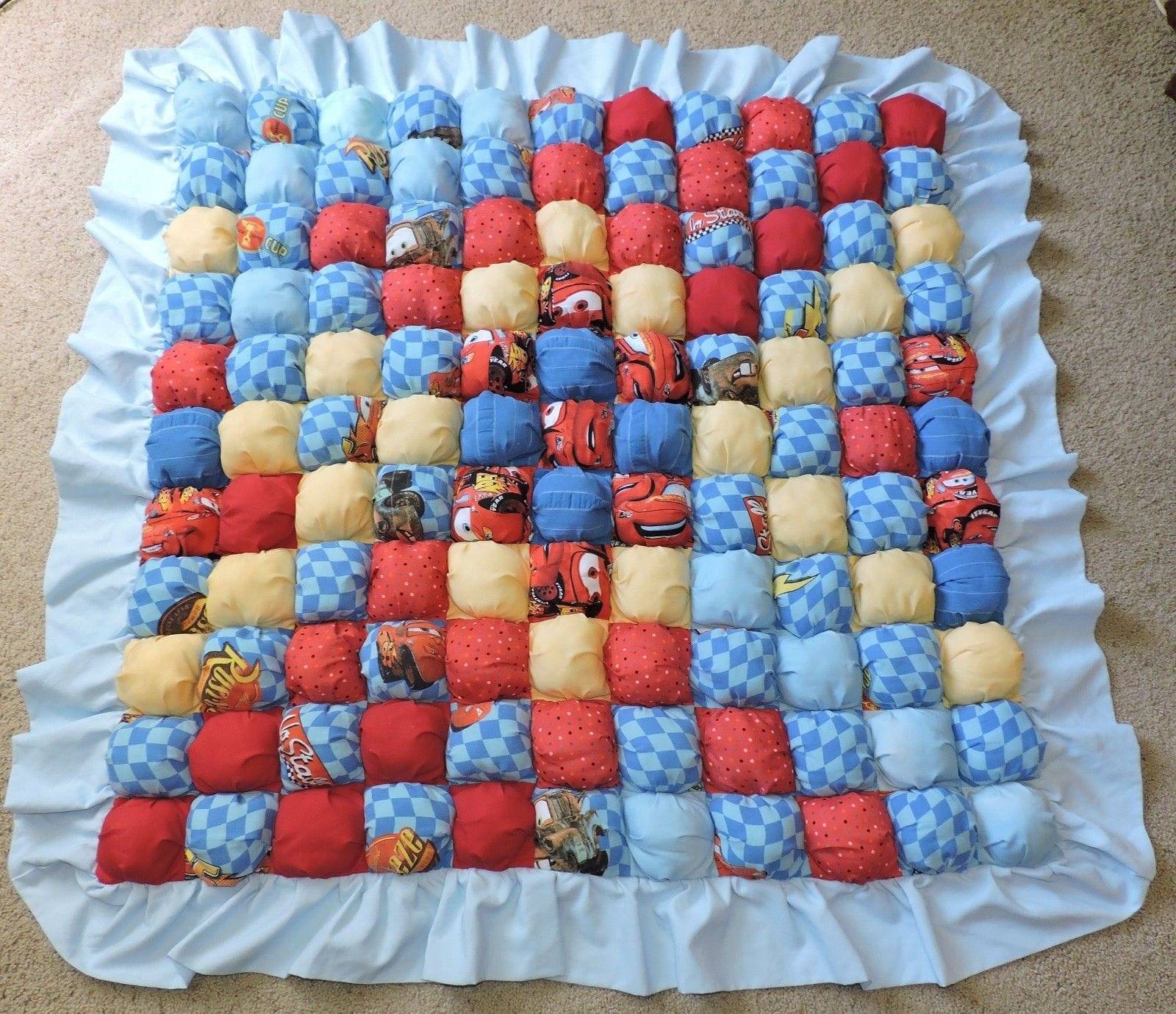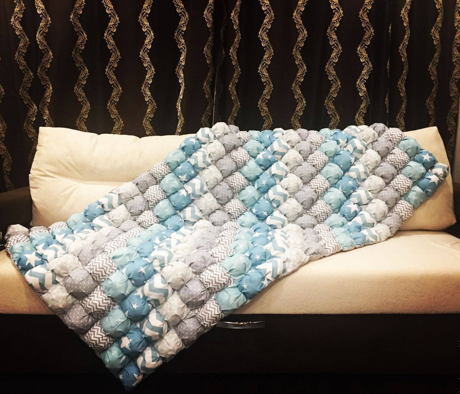 Одеяло бомбон – это не только привлекательный текстиль для вашего малыша, а и интересное времяпровождение для мамы. Кроме того, в такой же технике можно успешно создать бортики для кроватки и коврик.