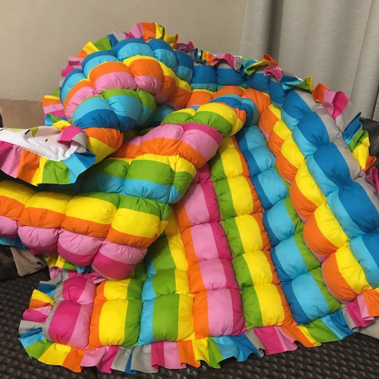 Но все же, одеяла бомбон имеют и свои недостатки. В первую очередь – это конечно же, цена такого изделия. Зачастую она довольно высокая, но это просто объясняется. Дело в том, что их шьют только вручную. А это значит, что процесс требует кропотливости и большого количества времени. Поэтому это и отражается на стоимости.