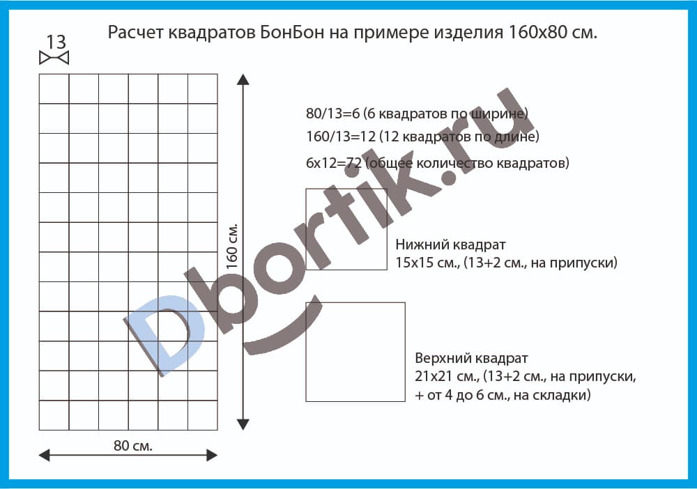 Расчет квадратов на примере изделия в готовом виде 160х80 см.