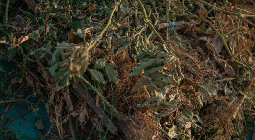 Побеги томатов, пораженные фитофторозом, необходимо сжигать