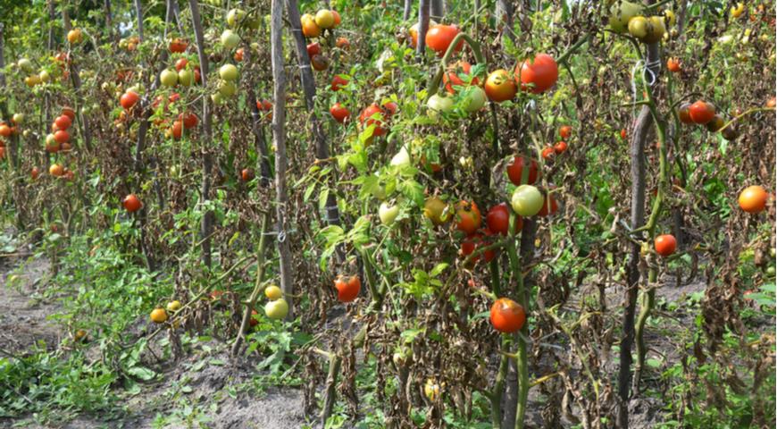 Фитофтороз томатов в той стадии, когда обработки не имеют смысла