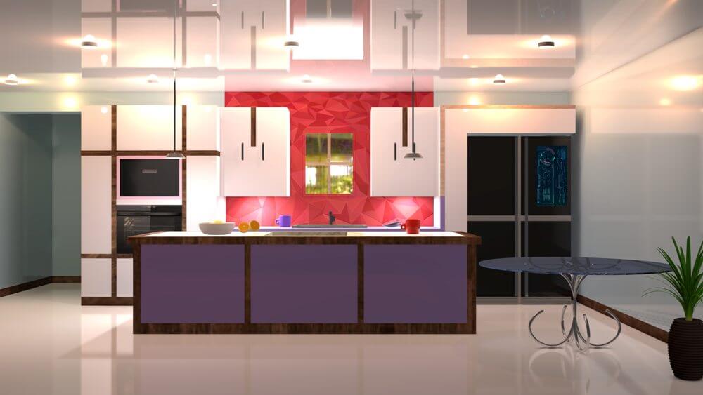 Яркое освещение должно быть постоянным спутником дизайна кухни в бордовых тонах.
