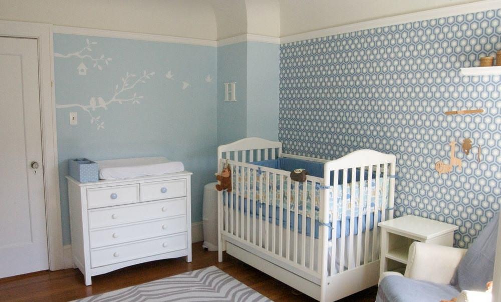 - Обои с рисунком прекрасно дополнит однотонный бордюр;