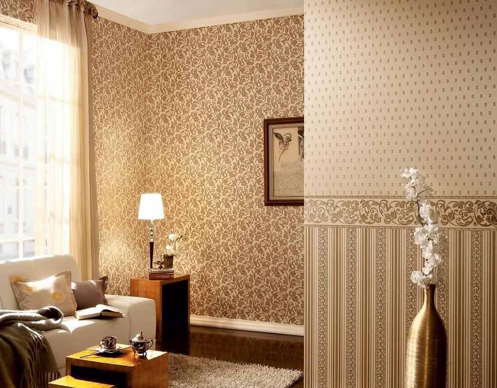 - дополнив обои с рисунком однотонным бордюром из этой же коллекции или цветовой гаммы можно сделать интерьер чуть более спокойным и сдержанным;
