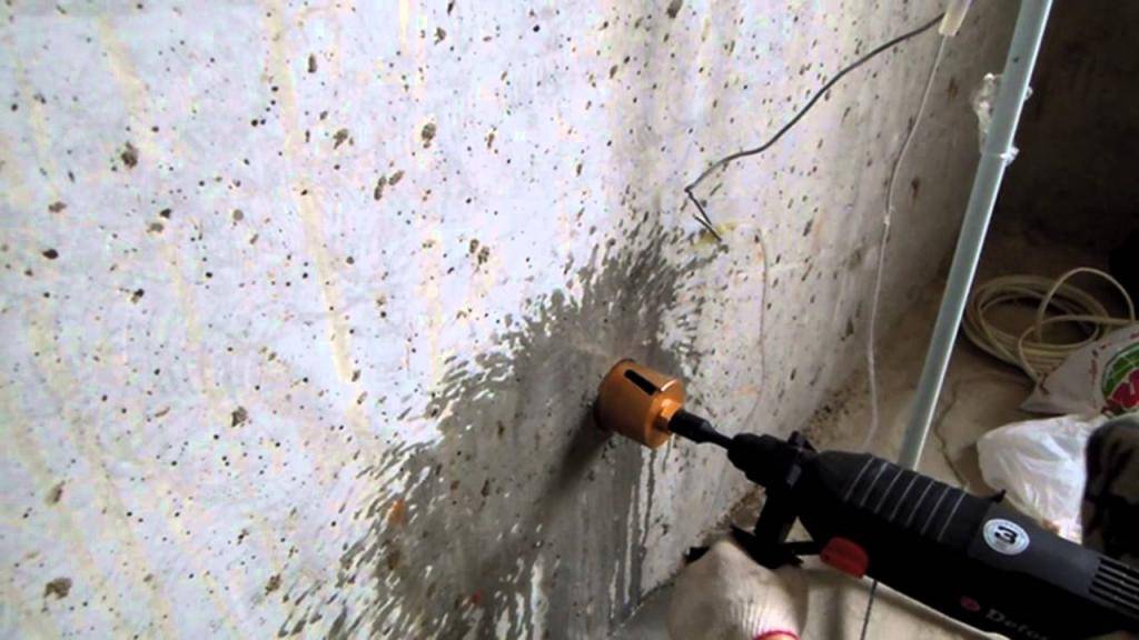 Для бурения бетонных стен алмазными коронками лучше всего подходит технология мокрого сверления.
