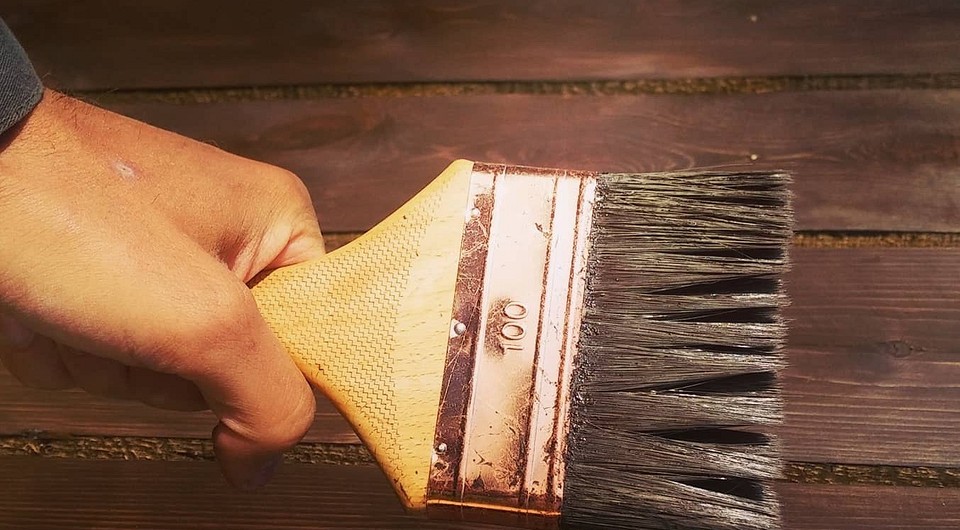 - Для самого нанесения нужно использовать качественную кисточку с длинным и густым ворсом. Не допустимо, чтобы ворсинки выпадали при надавливании. Средства наносят вдоль волокон древесины, участок за участком, стараясь не создавать резких переходов между оттенками.
