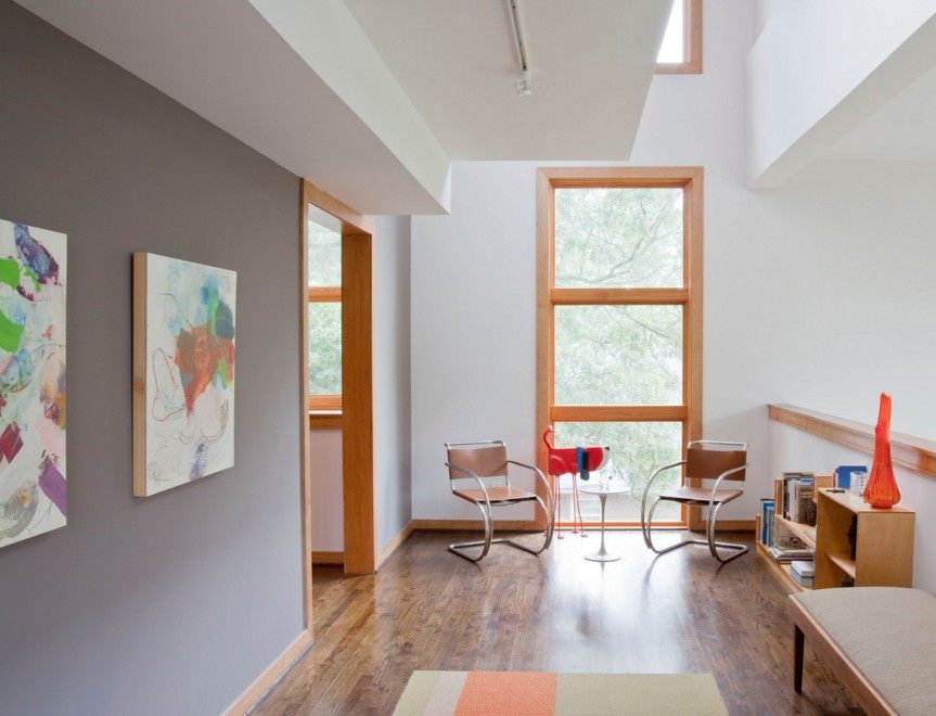 В таком помещении можно использовать темные оттенки, комбинируя их со светлыми и яркими тонами.