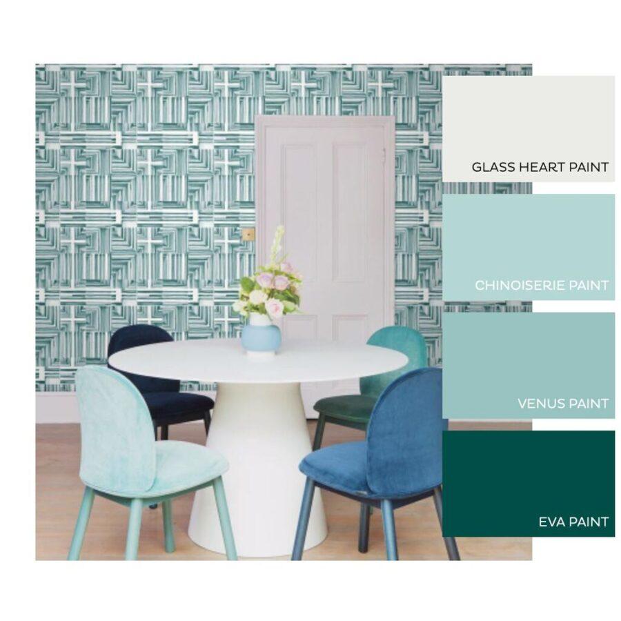 Как вариант: вместо молдинга можно использовать малярный скотч, который удаляют после высыхания обоих пластов, оставляя ровную полосу нужного оттенка. Молдинг также можно покрыть в подходящий для нового интерьера цвет.