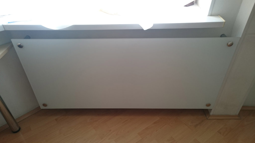 Батареи отопления скрываем с помощью деревянных, стеклянных или пластиковых экранов.