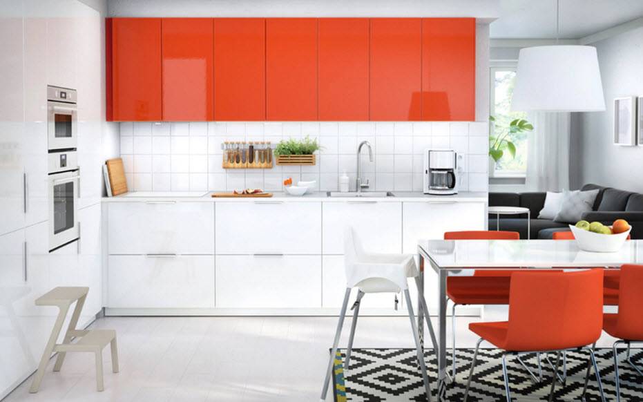Классический вариант белой кухни оставался популярным всегда. Однако его исполнение может быть разнообразным: матовые и современные, классические глянцевые или гладкие фасады. Белые дверцы мебельного изделия помогут придать кухне красочности и чистоты. Визуально такой гарнитур расширит пространство. Покупатели мебели в Икеа нередко отдают предпочтение именно этому варианту, ведь он сочетается с любым стилем и дизайном кухни. Предметы декора в подобной обстановке будут смотреться еще привлекательнее.