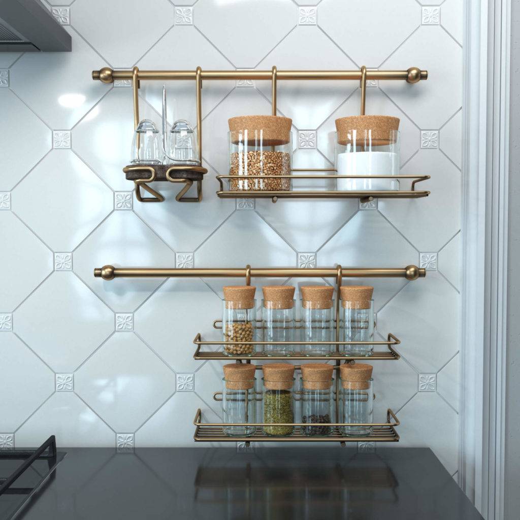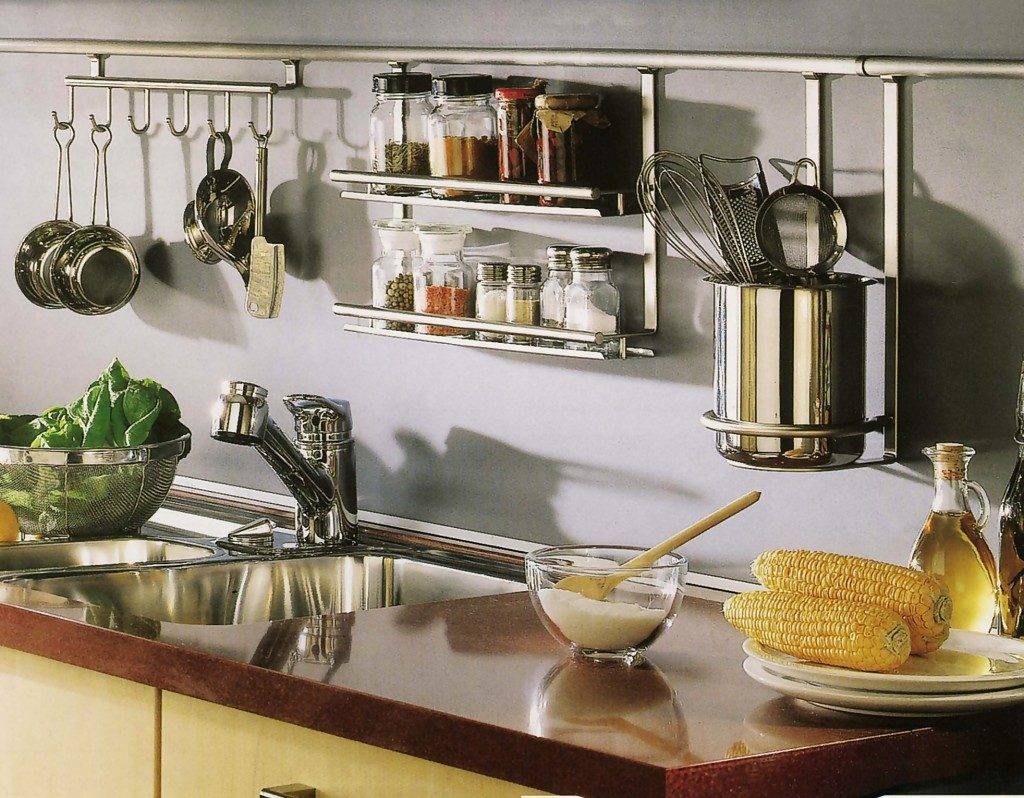 Внутренние элементы позволяют сделать кухню удобной и скрыть содержимое. За фасадами можно использовать: