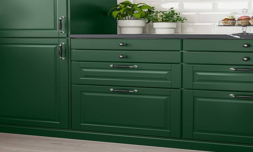 В ассортименте есть филенчатые, стеклянные и глянцевые фасады от пастельных до модных ярких цветов.Более того, модельный ряд «ИКЕА» представлен такими направлениями дизайна, как: