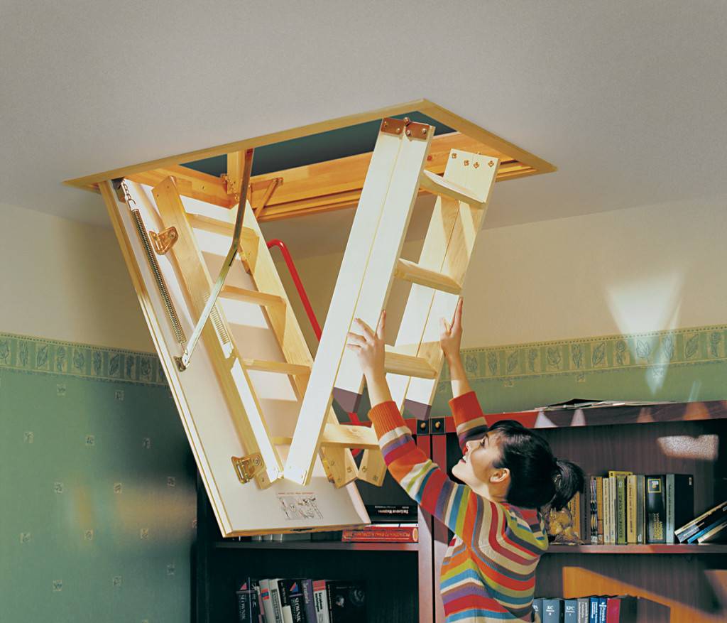Раскладные чердачные лестницы самые разнообразные по конструкции, принципу действия и материалам изготовления: