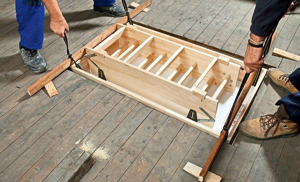 Те, кто умеет работать с древесиной или металлом, а также пользоваться инструментами, могут попытаться изготовить и установить откидную конструкцию самостоятельно. Это отличный способ повысить квалификацию и не покупать дорогостоящую конструкцию. Если же лестница уже куплена, то самостоятельная установка также позволит неплохо сэкономить хорошему хозяину.