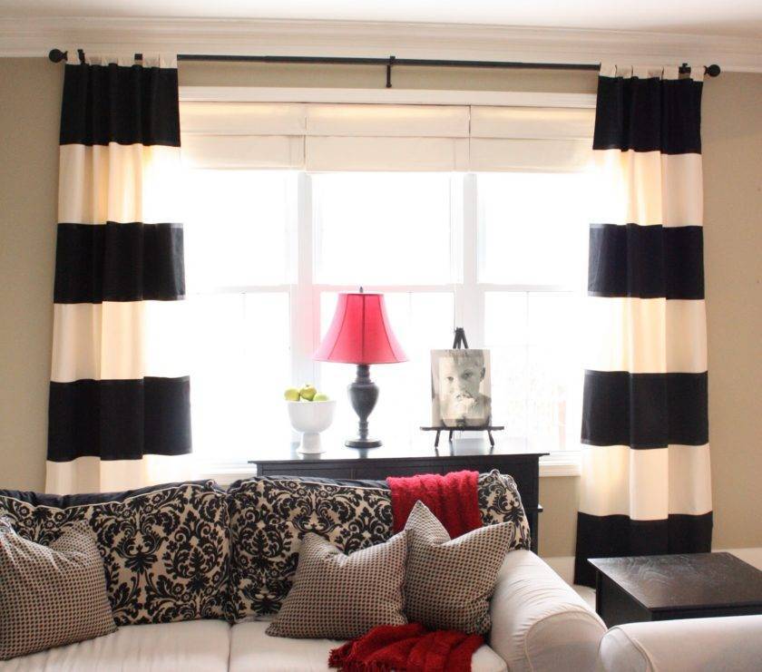 Подушки, картины, ковер, занавески, сама мебель могут соответствовать черно-белым украшениям. Пастельные оттенки или цвета могут хорошо сочетаться с ним:
