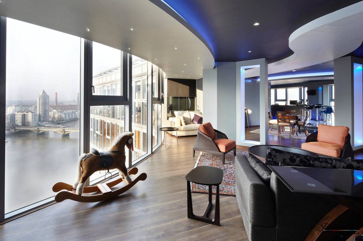 Он станет лучшим решением при оформлении комнаты с огромными панорамными окнами.