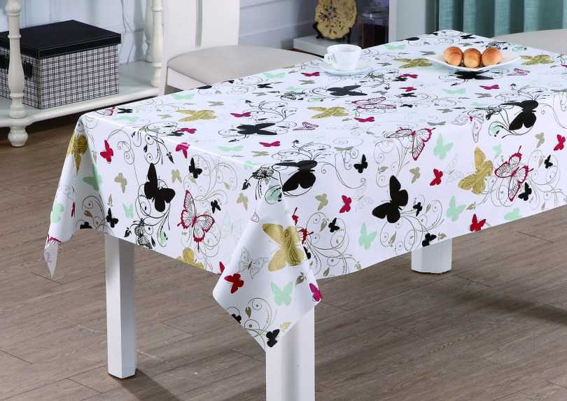 Если вы выбираете скатерть исключительно на кухню, то наилучшим решением будет экземпляр из синтетического материала, самой известной разновидностью которого является обычная клеенка