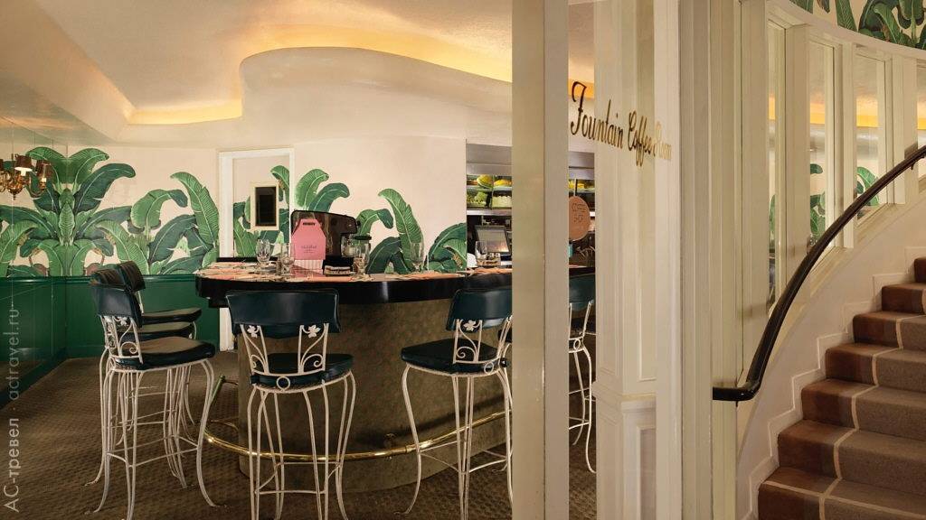 Кафе Foutain, декорированное фирменными обоями с банановыми листьями
