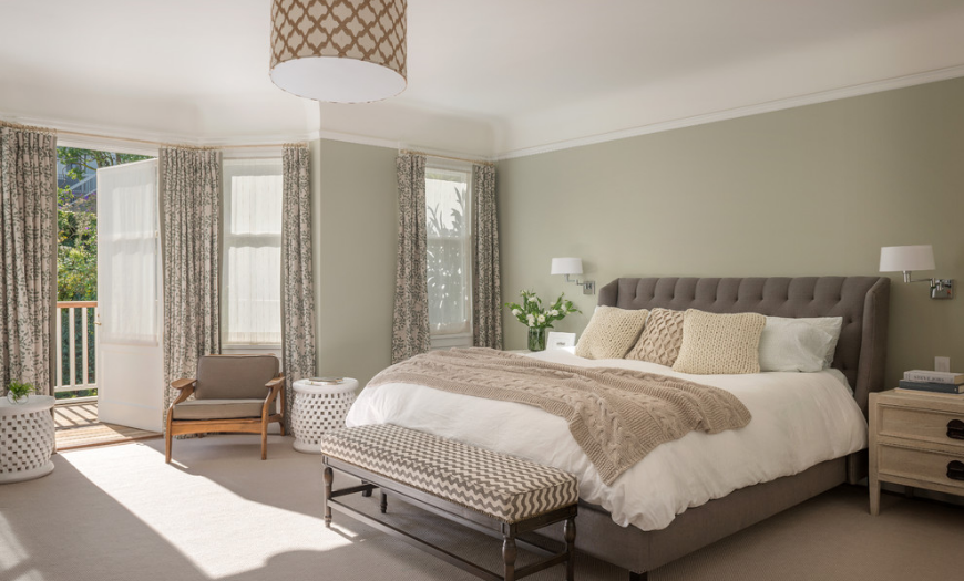 Спальня – место для уединения, расслабления и сна. Оформление должно способствовать этому, поэтому берите за базу спокойные, мягкие тона или нейтральный белый.