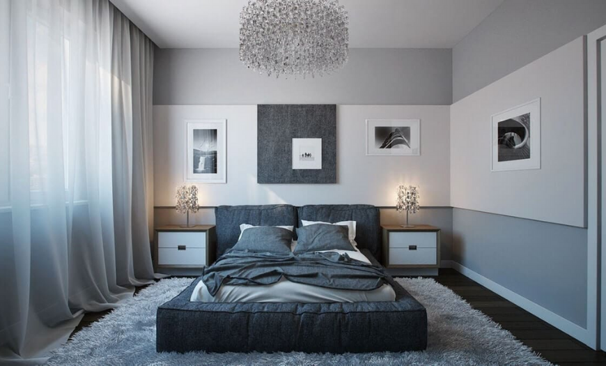 Современные исследования показали, что наличие в спальне ярких цветовых пятен может приводить к излишнему возбуждению, мешающему отходу ко сну и полноценному отдыху. Серый цвет здесь оказывается весьма кстати. Создавая ауру спокойствия и умиротворённости, он не только помогает успокоиться и заснуть, но и вносит неоценимый вклад в создание изысканного современного интерьера.Конечно, спальня не лучшее место для экспериментов со всеми оттенками серого. В этой комнате стоит предпочесть всего один, максимум – два основополагающих тона. Для создания лёгкого и воздушного интерьера идеально подойдёт сочетание светло-серого с белоснежным.Жемчужно-серая палитра с добавлением кремового или карамельного наполнит спальню умиротворяющей нежностью, а в сочетании с нежно – салатовым или цветом первой зелени – успокоит, помогая избавиться от грустных мыслей.