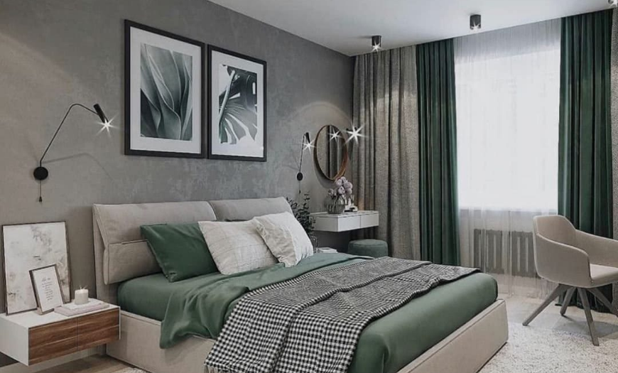 Прекрасно сочетаются оттенки зеленого с серым, голубым и синим цветом.