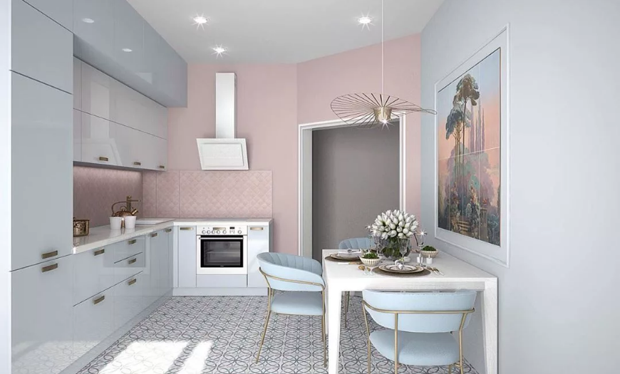 Изящная и утонченная кухня, выполненная в нежном цвете