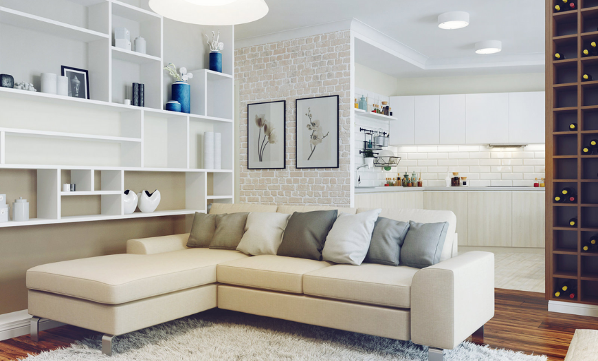 в интерьере уже есть яркие аксессуары и детали, которые привлекают внимание.