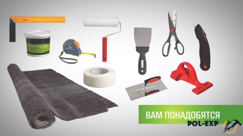 Далее нужно продумать, как лучше зафиксировать полотно к полу. Если комната не слишком большая, до 20 м2, можно применить двусторонний скотч. На площади до 12 м2 скотч крепится только по периметру, от 12 до 20 м2 – по периметру и параллельными полосами через каждый метр. На большой площади рекомендуется использовать специальный клей, например, Момент универсальный, Homakoll, FORBO Eurocol 525.