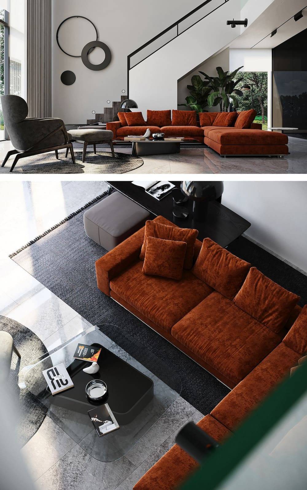 По мнению дизайнеров, оттенок дивана должен контрастировать с отделкой стен, пола. Он может быть светлее либо темнее