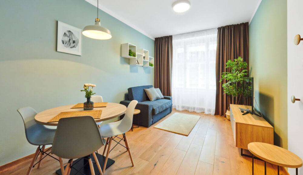 Доминирующий оттенок должен быть один, остальные вспомогательными. Цвета мебели, потолка, стен должны отличаться, но при этом гармонично сочетаться друг с другом.