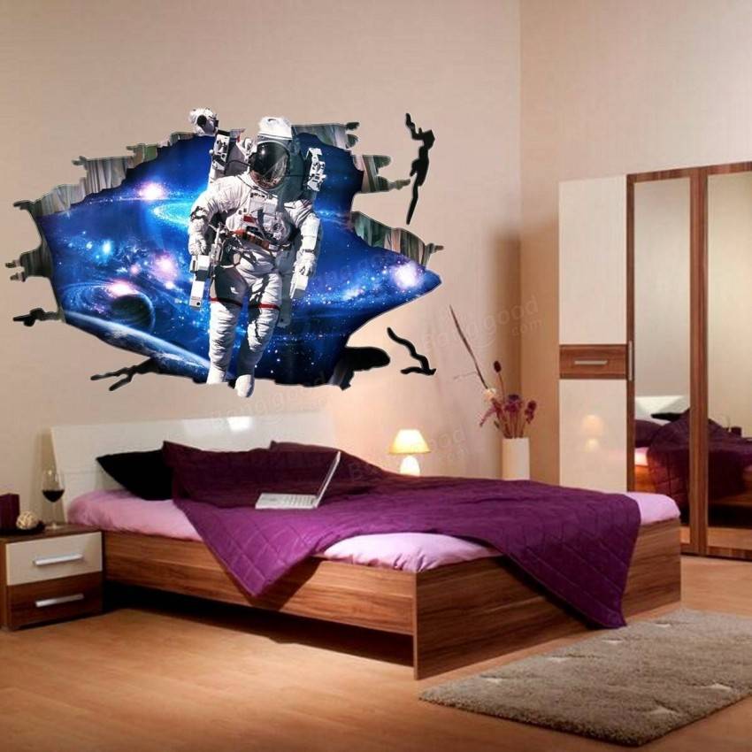 Одну из стен можно декорировать 3D- или фотообоями. Они станут доминирующими в интерьере, вся обстановка будет подчиняться уже заданной теме.