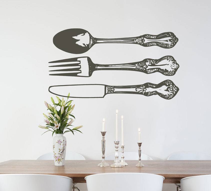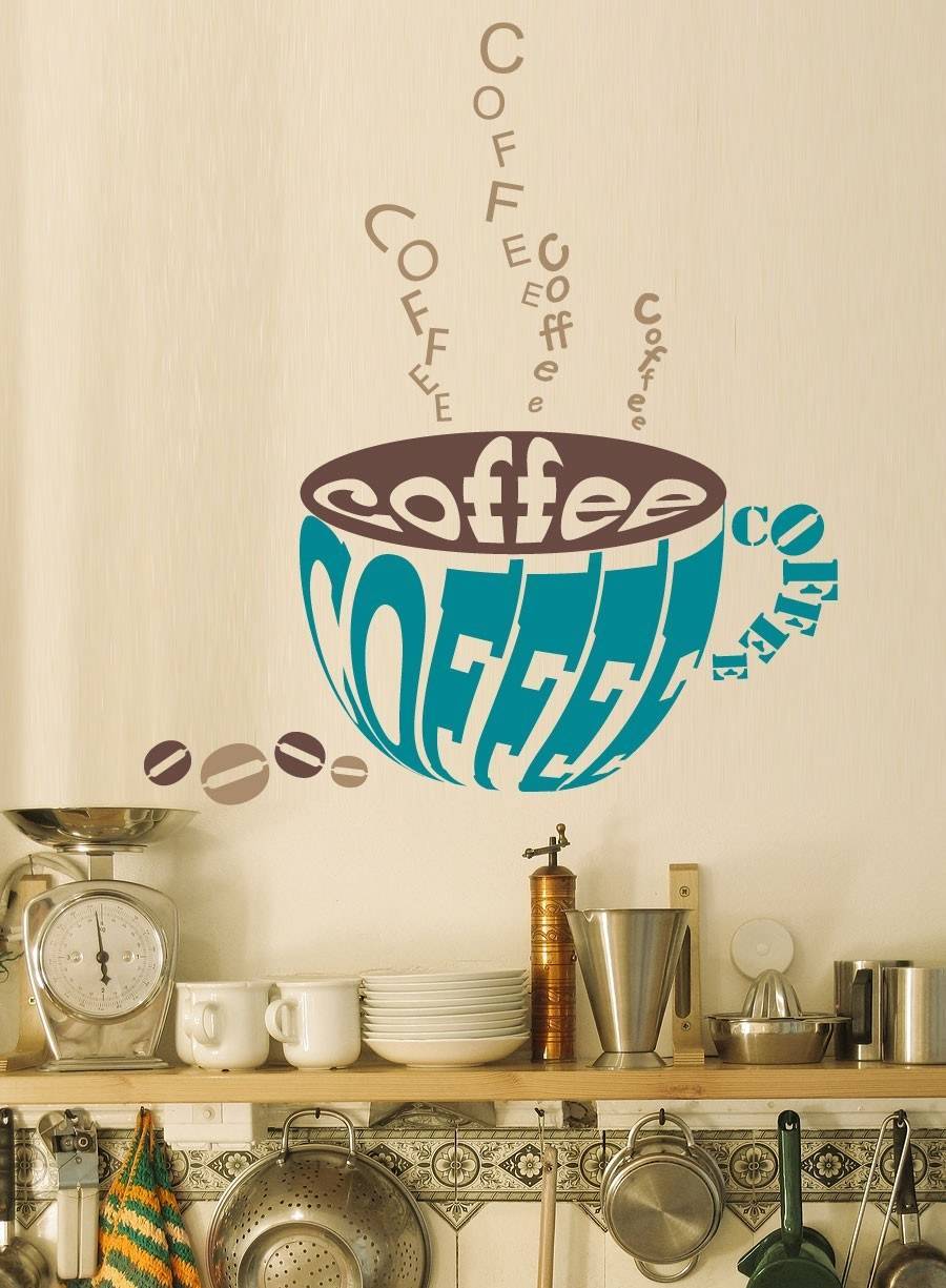 Интерьерные наклейки стоит использовать для украшения современных кухонь. Панно из мозаики, тарелки с росписью, самодельные картины, выполненные из кофейных зерен, круп, макаронных изделий, окрашенных разноцветными красками, отлично будут смотреться в любом интерьере.