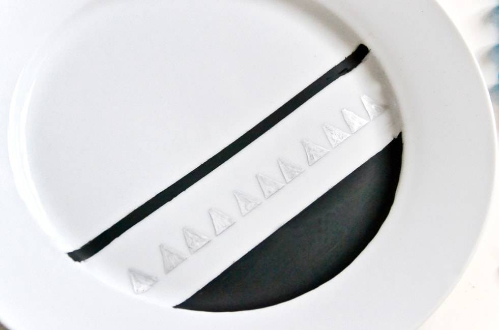 С помощью фломастера черного цвета заполняем нижнюю часть тарелки. Делать это нужно максимально аккуратно.