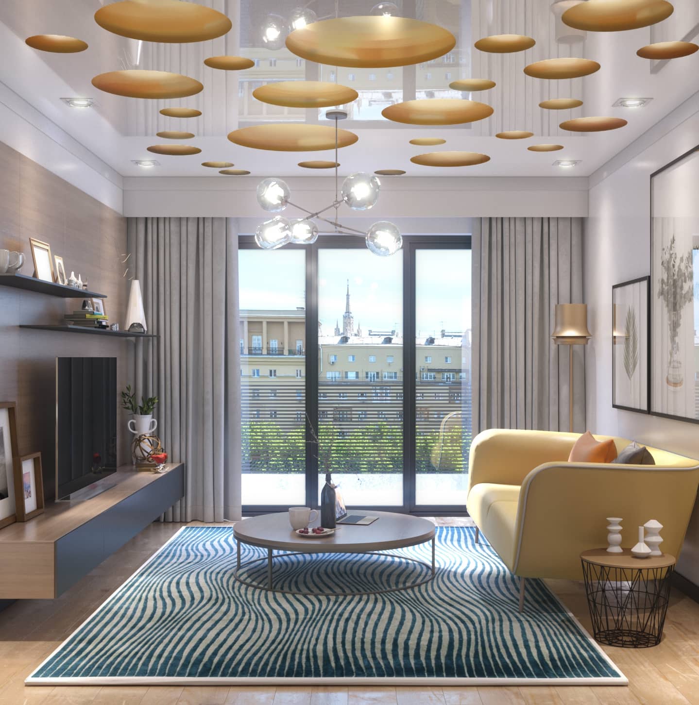 Натяжные потолки глянцевые фото в гостиной
