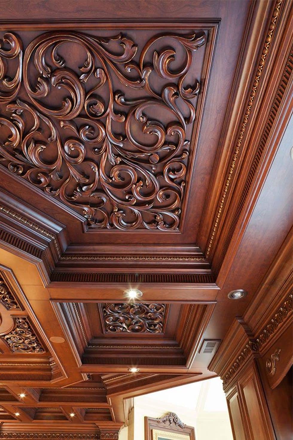 Преимущество и уникальность резного потолка в его рисунке